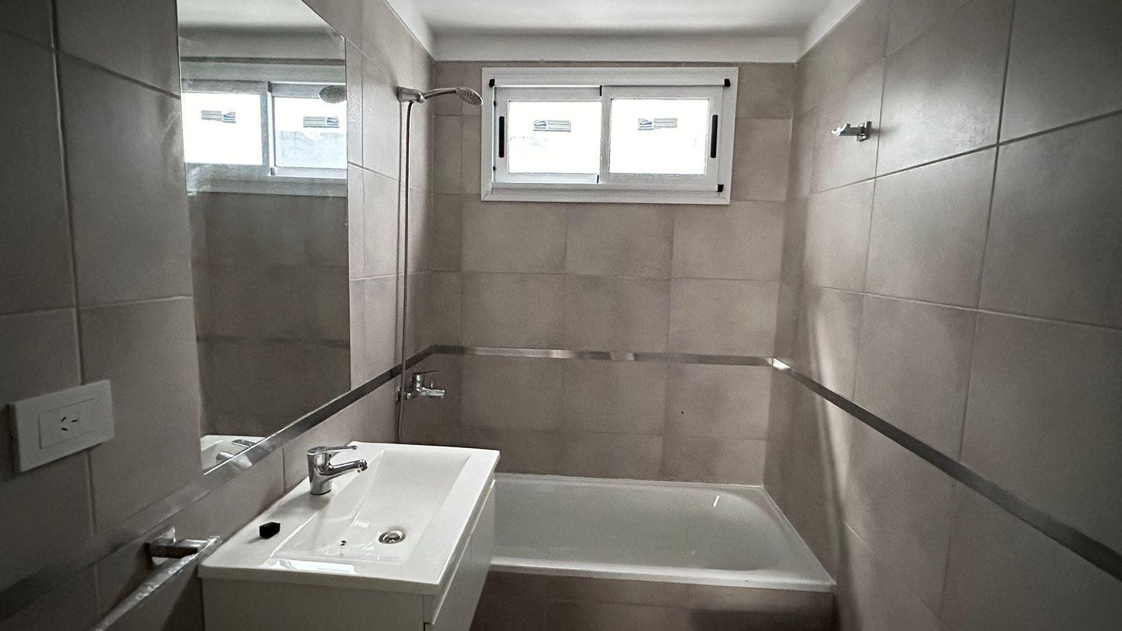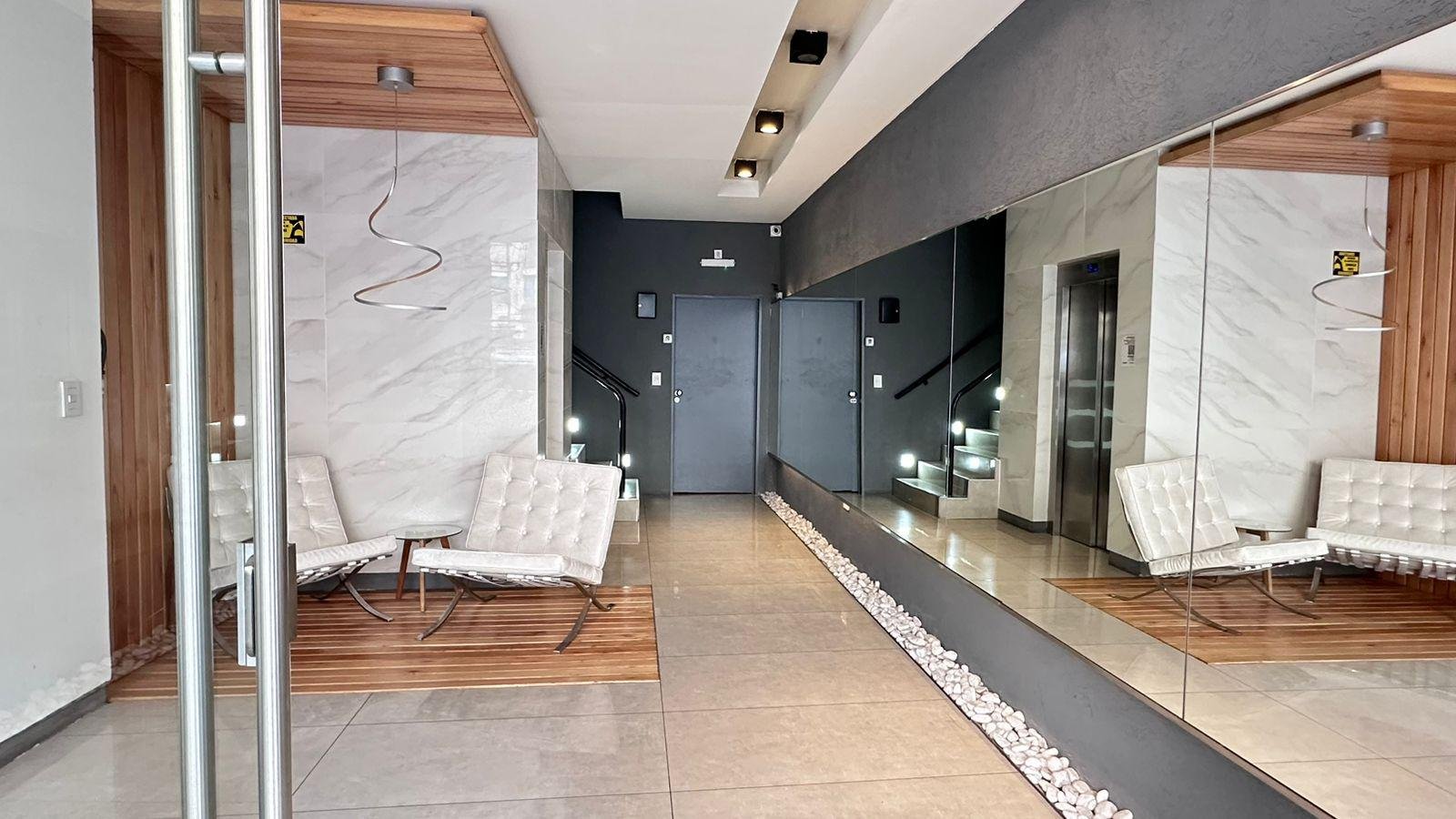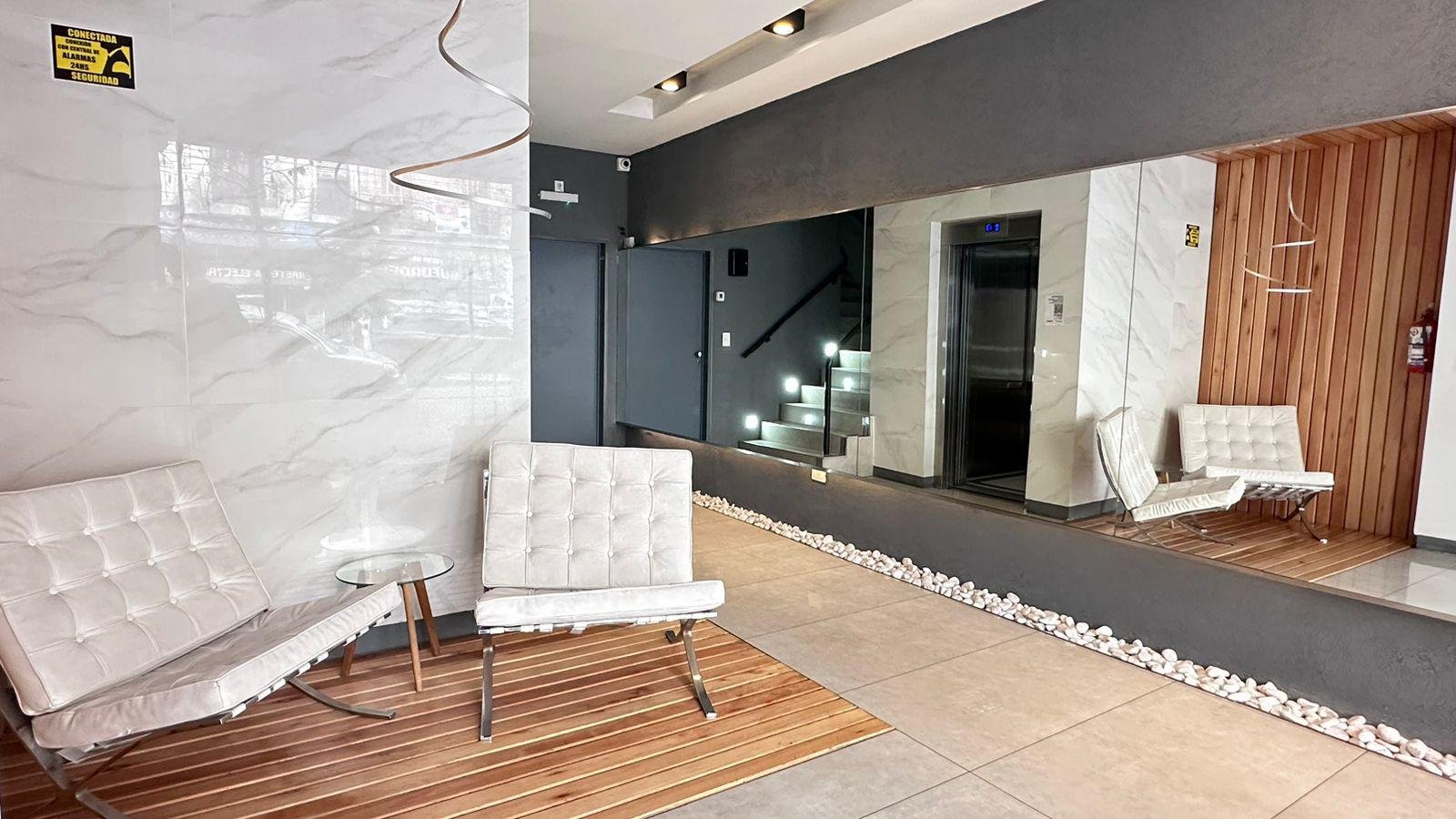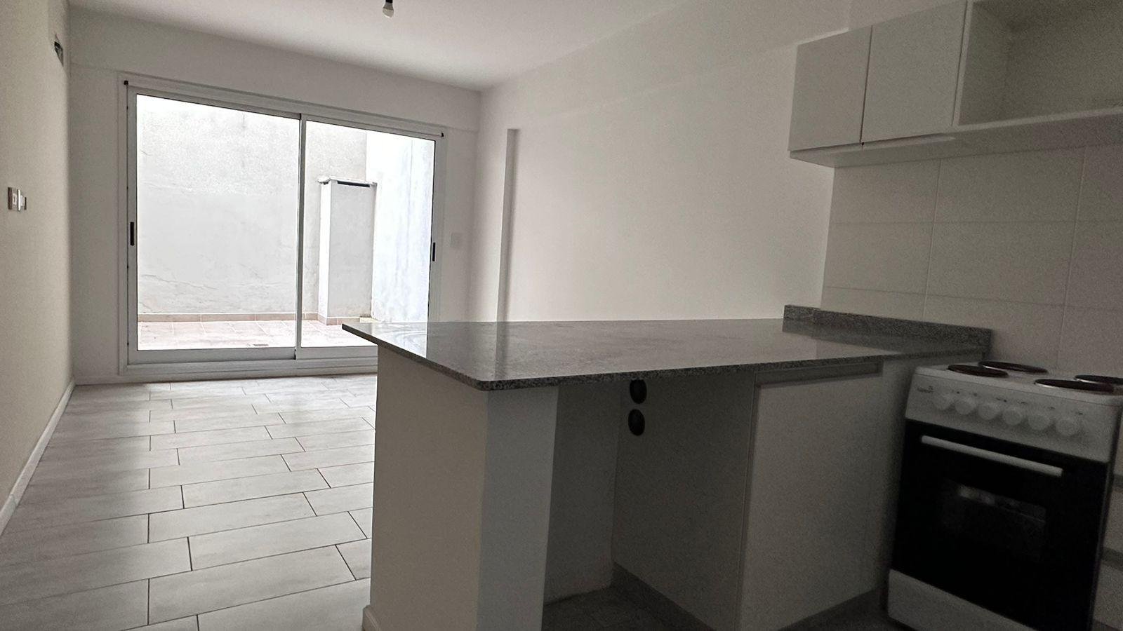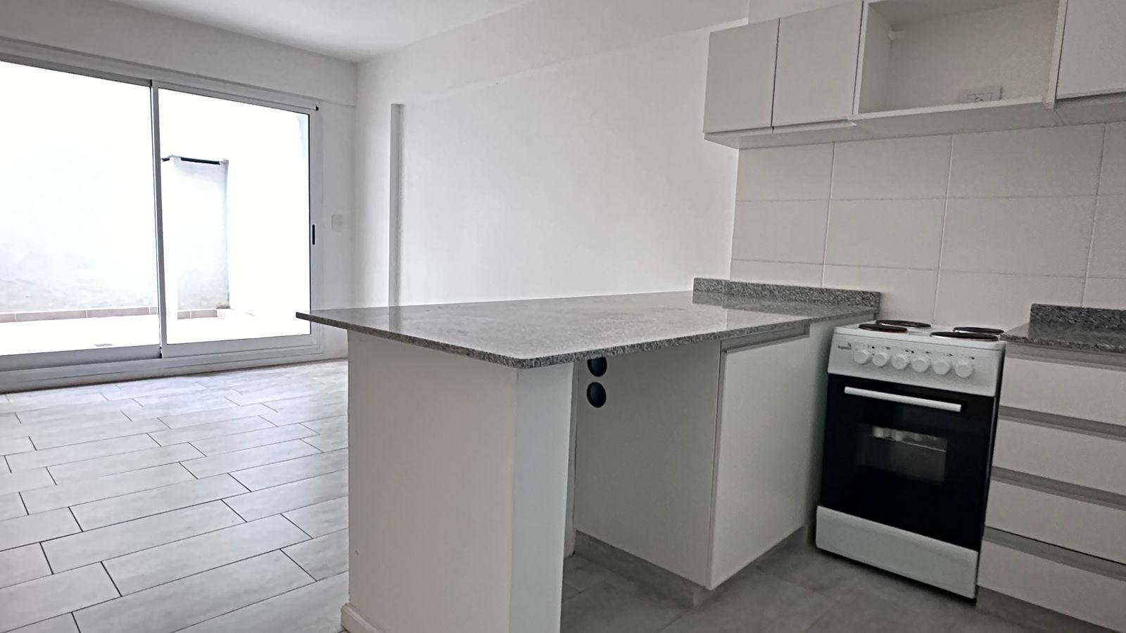 Al ingresar se encuentra la cocina integrada con barra desayunadora que hace perfectamente divisible el ambiente generando el lugar para dormitorio por un lado y living por el otro y esto permite que sea funcional como un 2 ambientes.