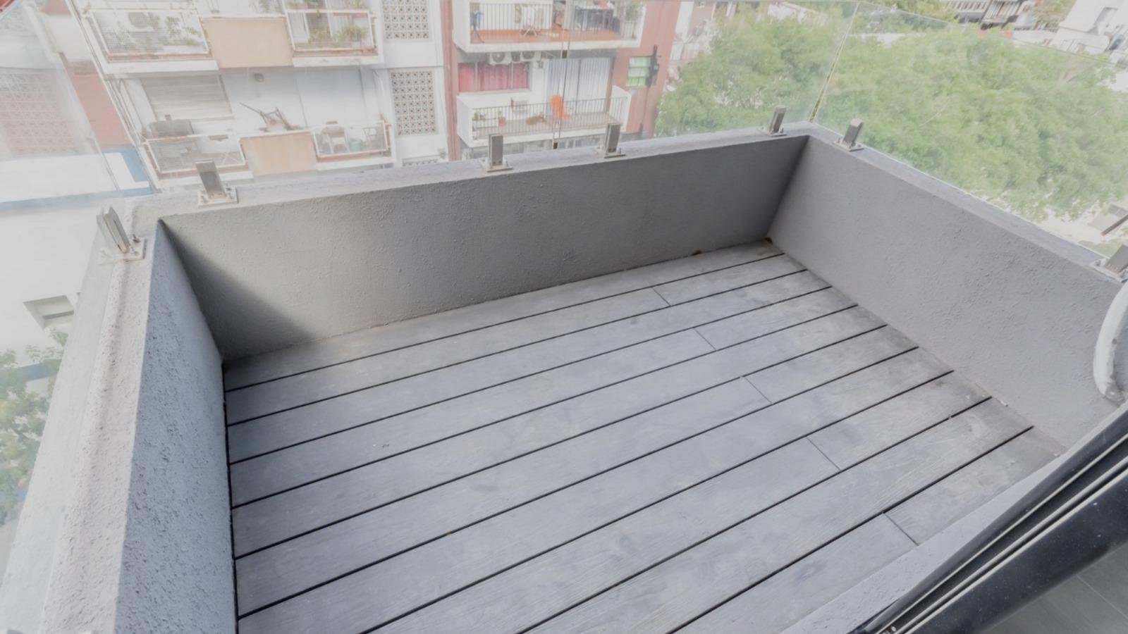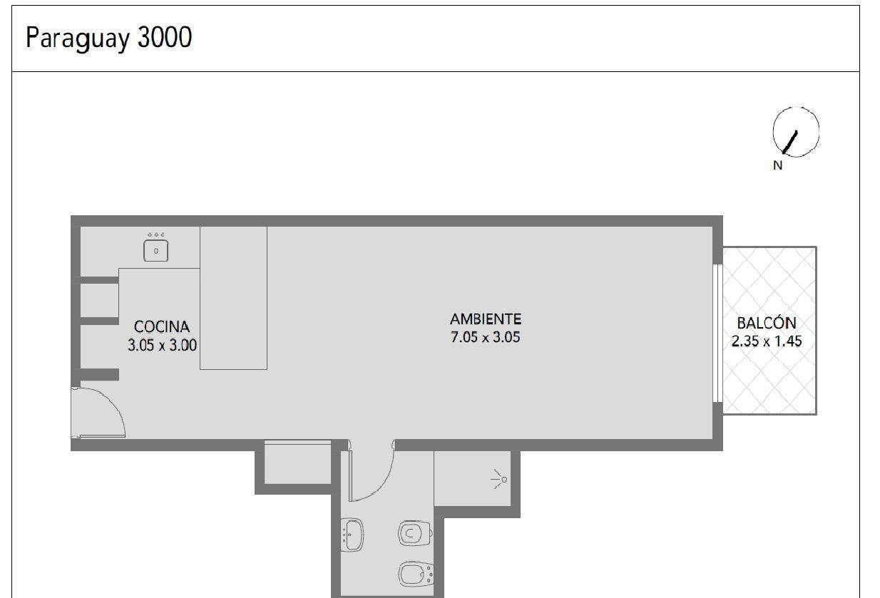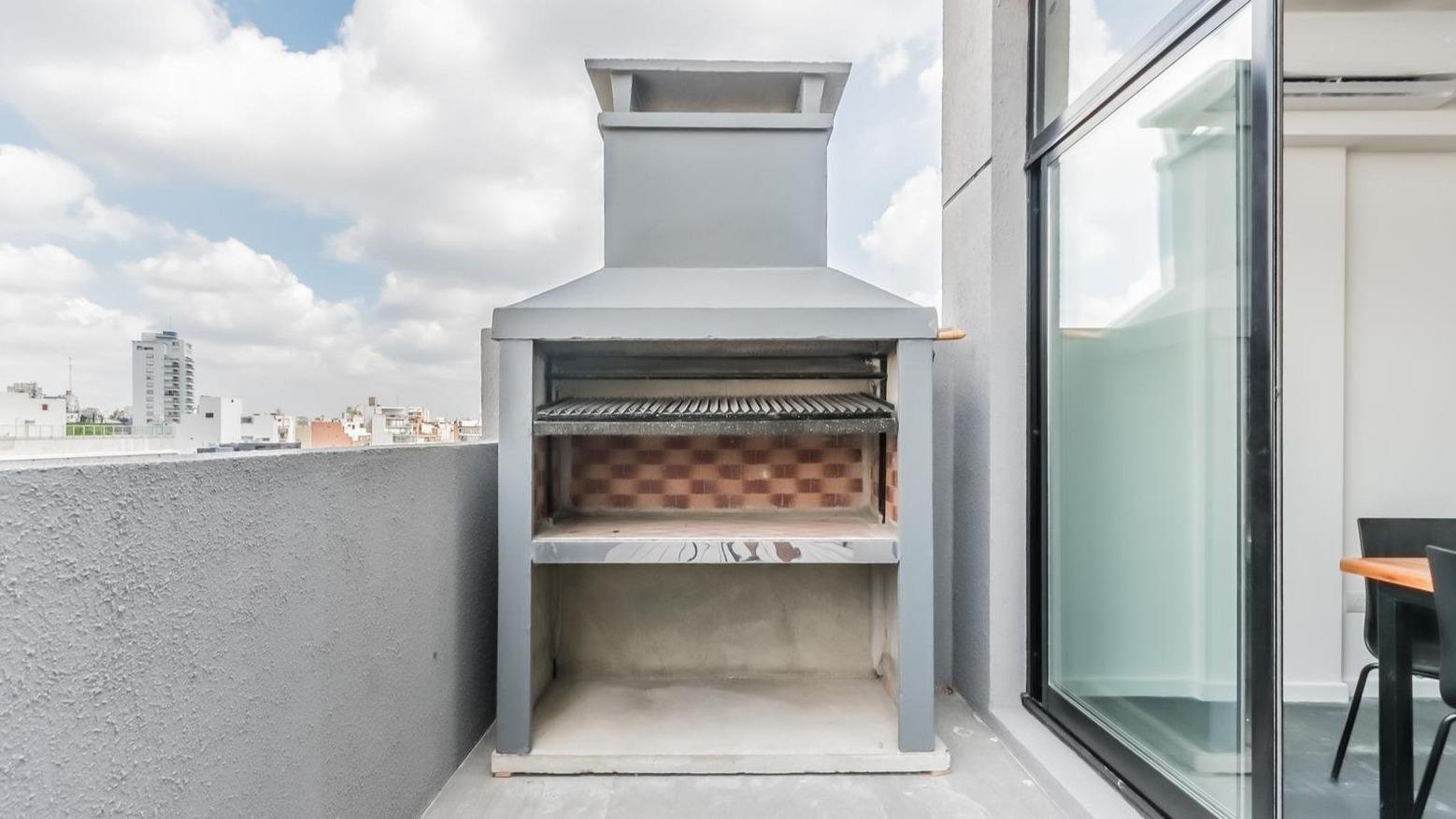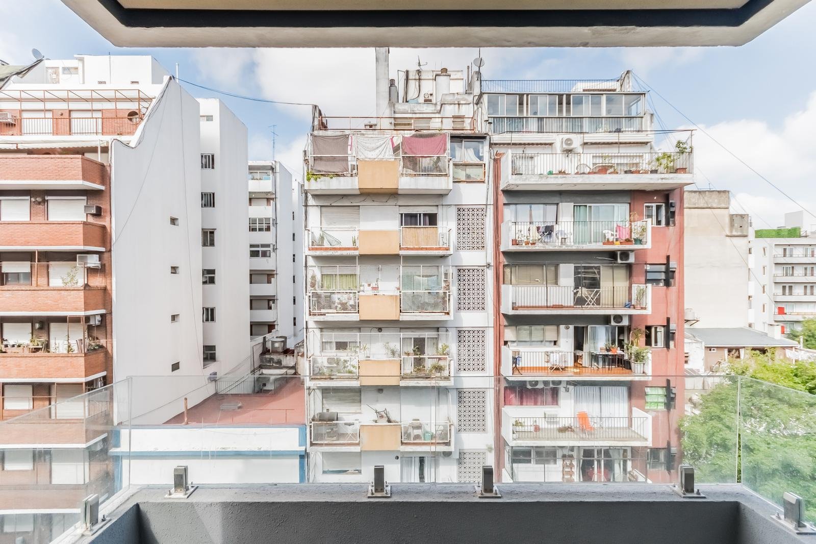 DISTRIBUCIÓNAmplio monoambiente al contrafrente con orientación norte y excelente luminosidad.Cocina integrada equipada con anafe de dos hornallas y horno eléctrico.Baño completo con finas terminaciones.Balcón con vista abierta.Pisos de porcelanato símil madera.Preinstalación para aire acondicionado.