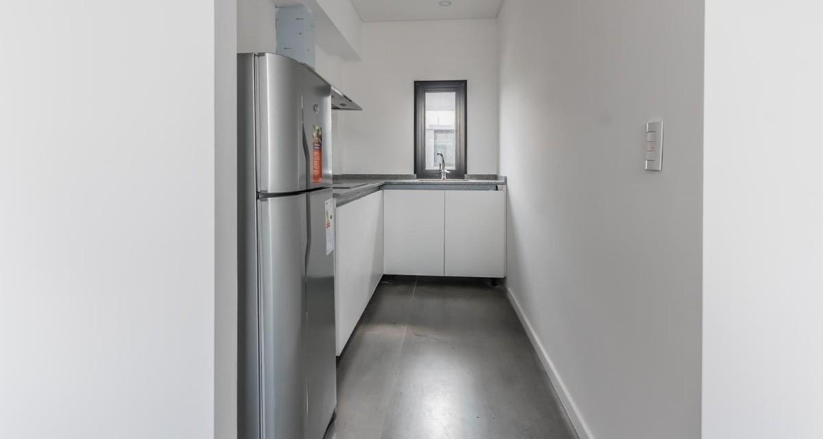 DISTRIBUCIÓNAmplio monoambiente al contrafrente con orientación norte y excelente luminosidad.Cocina integrada equipada con anafe de dos hornallas y horno eléctrico.Baño completo con finas terminaciones.Balcón con vista abierta.Pisos de porcelanato símil madera.Preinstalación para aire acondicionado.