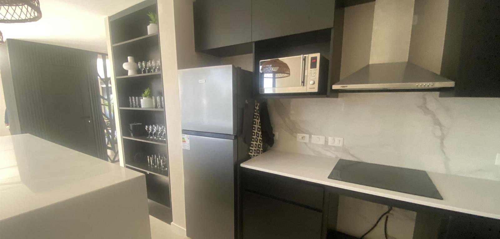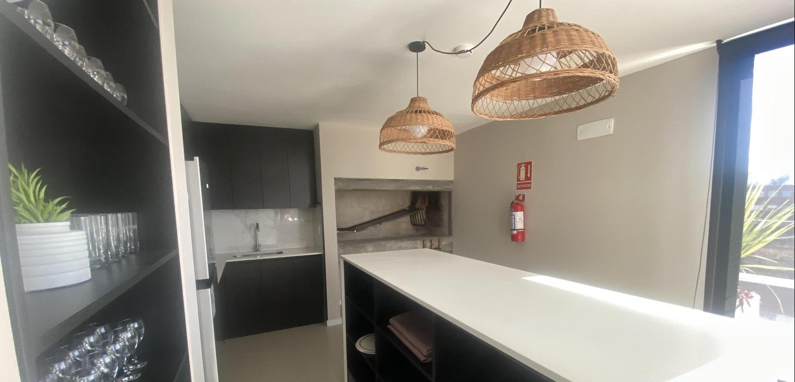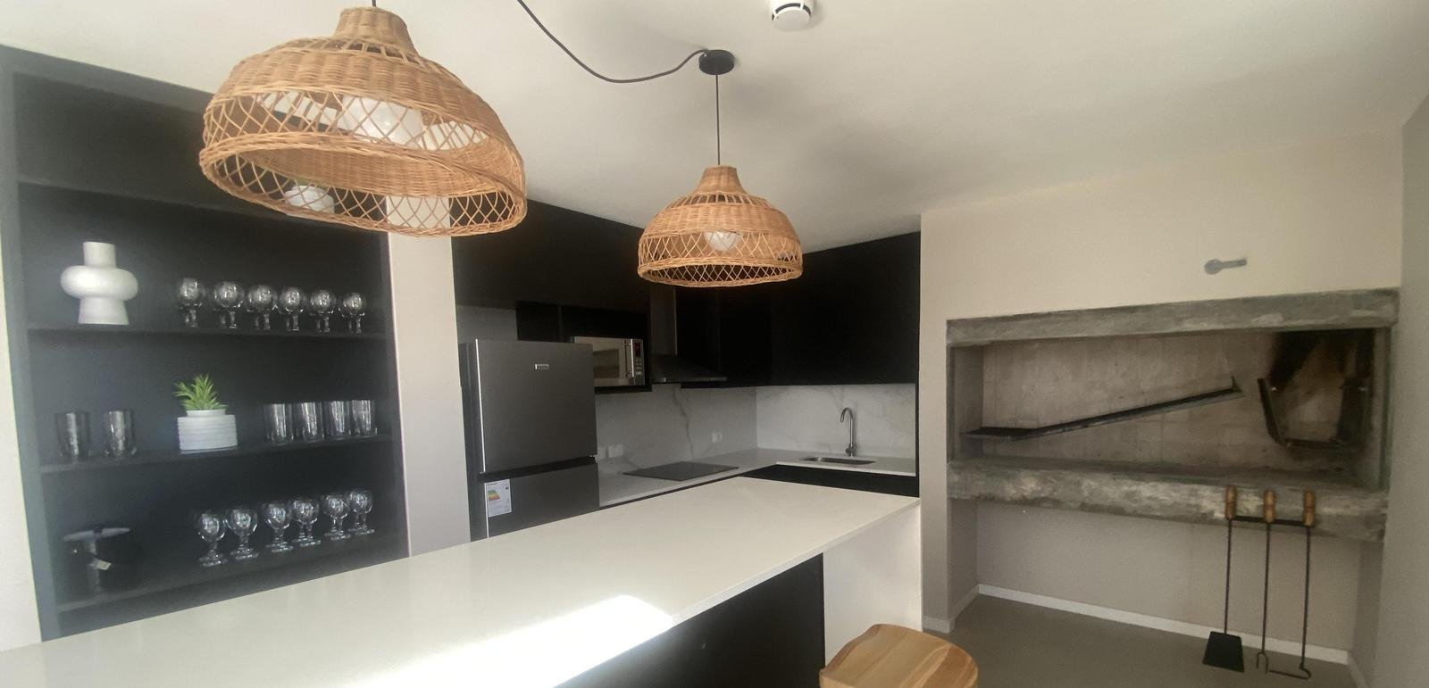 -Living comedor al frente con salida a terraza, cocina integrada con placares sobre y bajo mesada.
