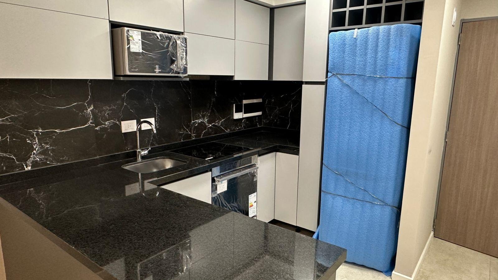 – Cocina con anafe eléctrico y mesada de granitro negro