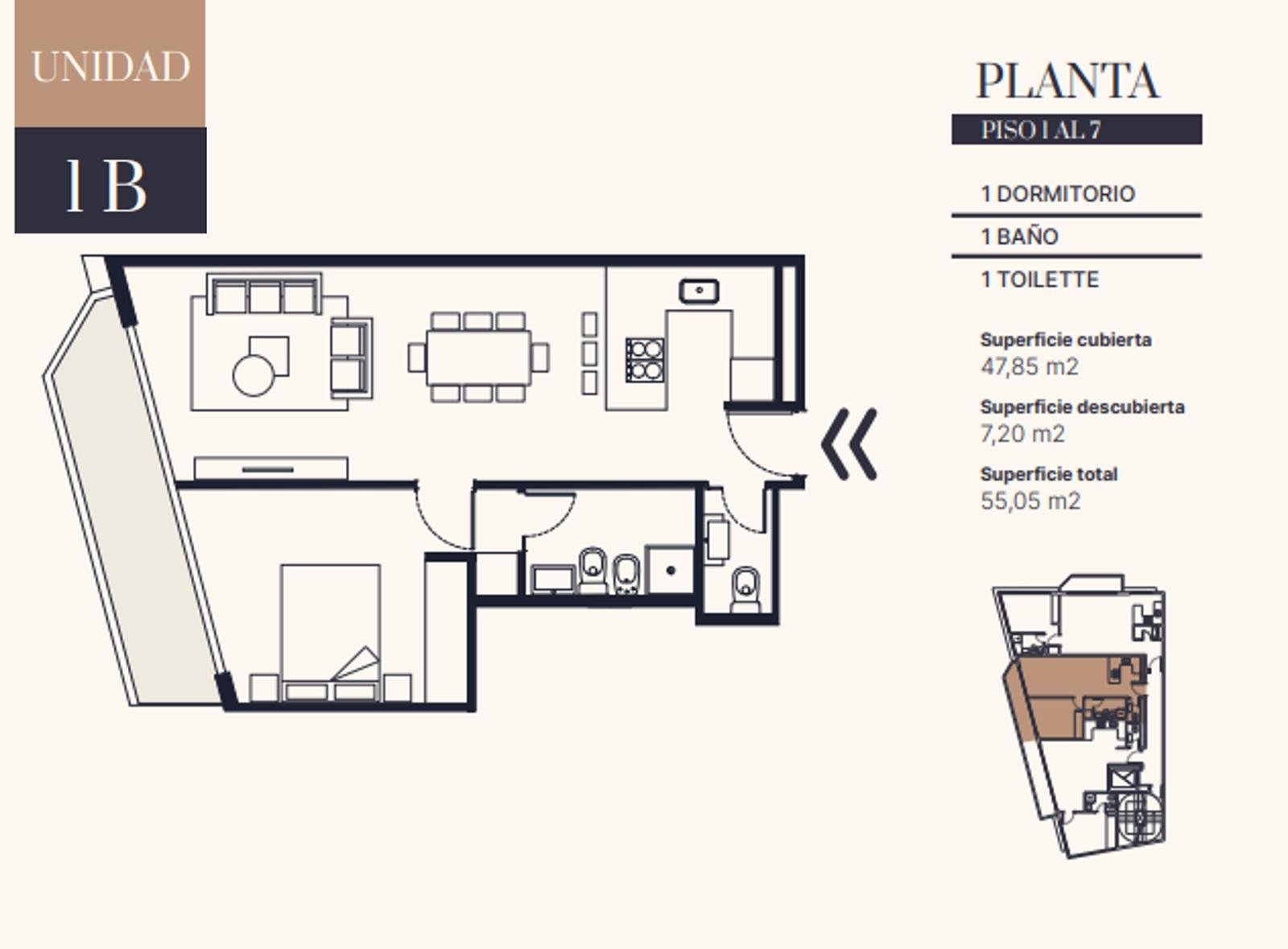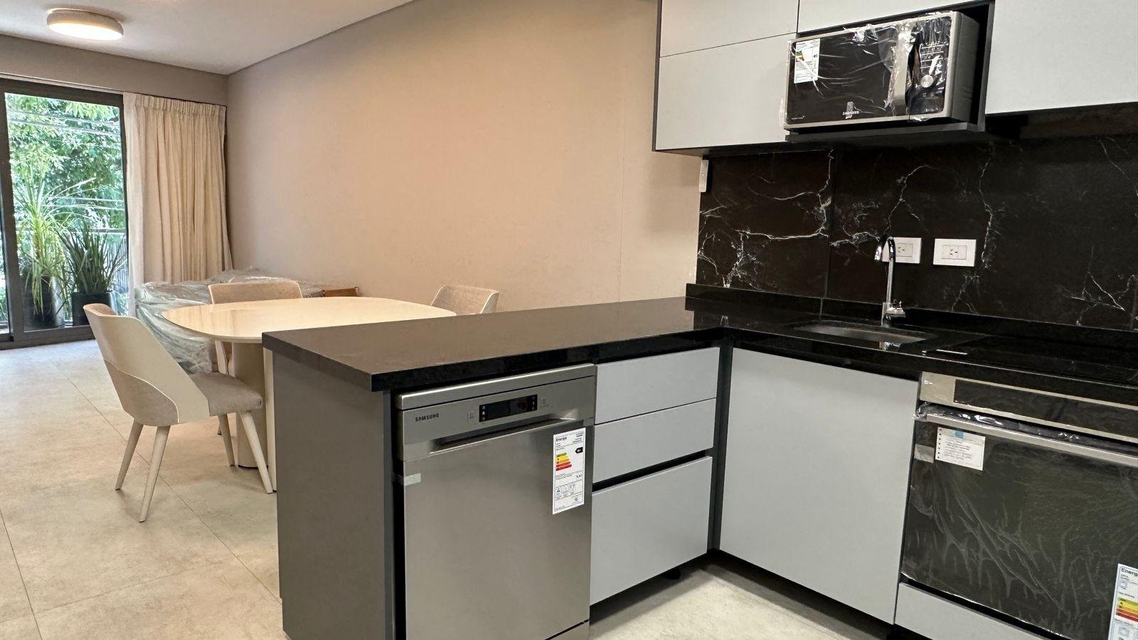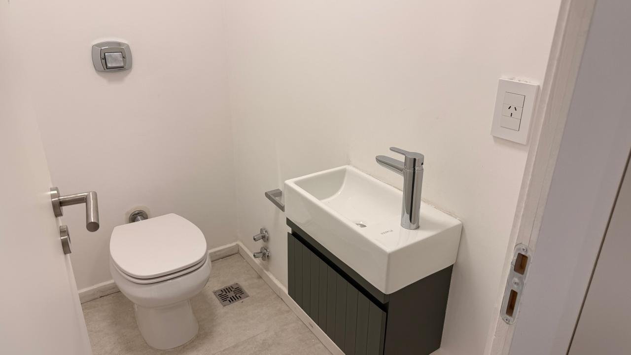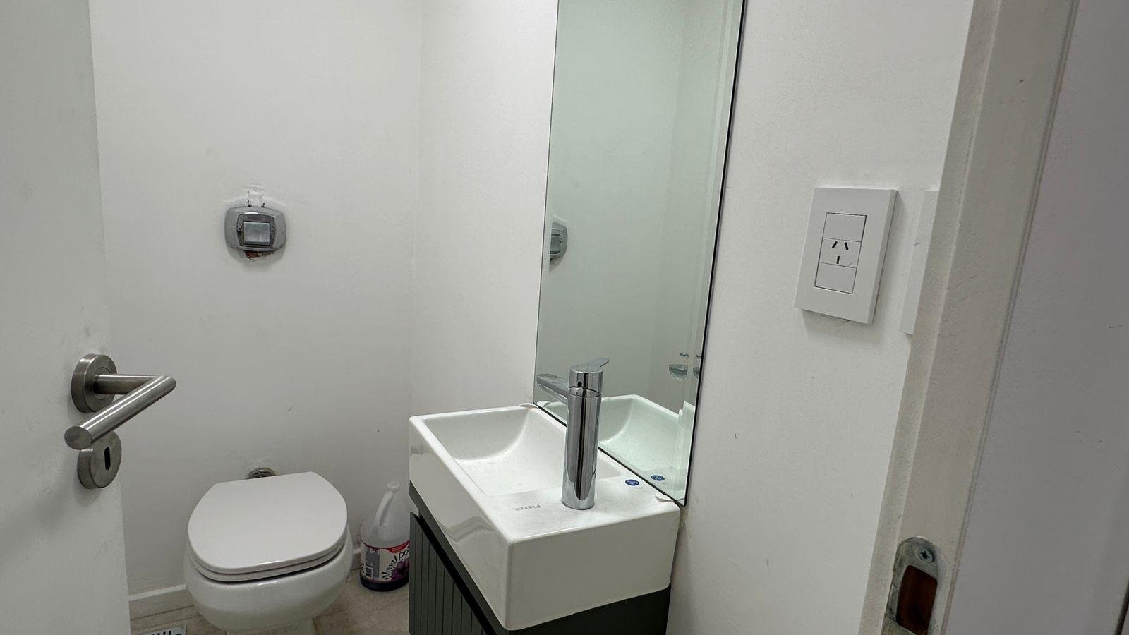 DISTRIBUCIÓNLiving comedor con salida a balcón corrido al frenteCocina integrada con anafe eléctrico y mesada de granito negroDormitorio con placardBaño completo y toilette de recepciónSuperficie total: 56,20 m² (cubierta 49,80 m² + descubierta 6,40 m²)Disposición: frenteOrientación: noroesteAntigüedad: a estrenarEstado: excelenteExpensas: consultar