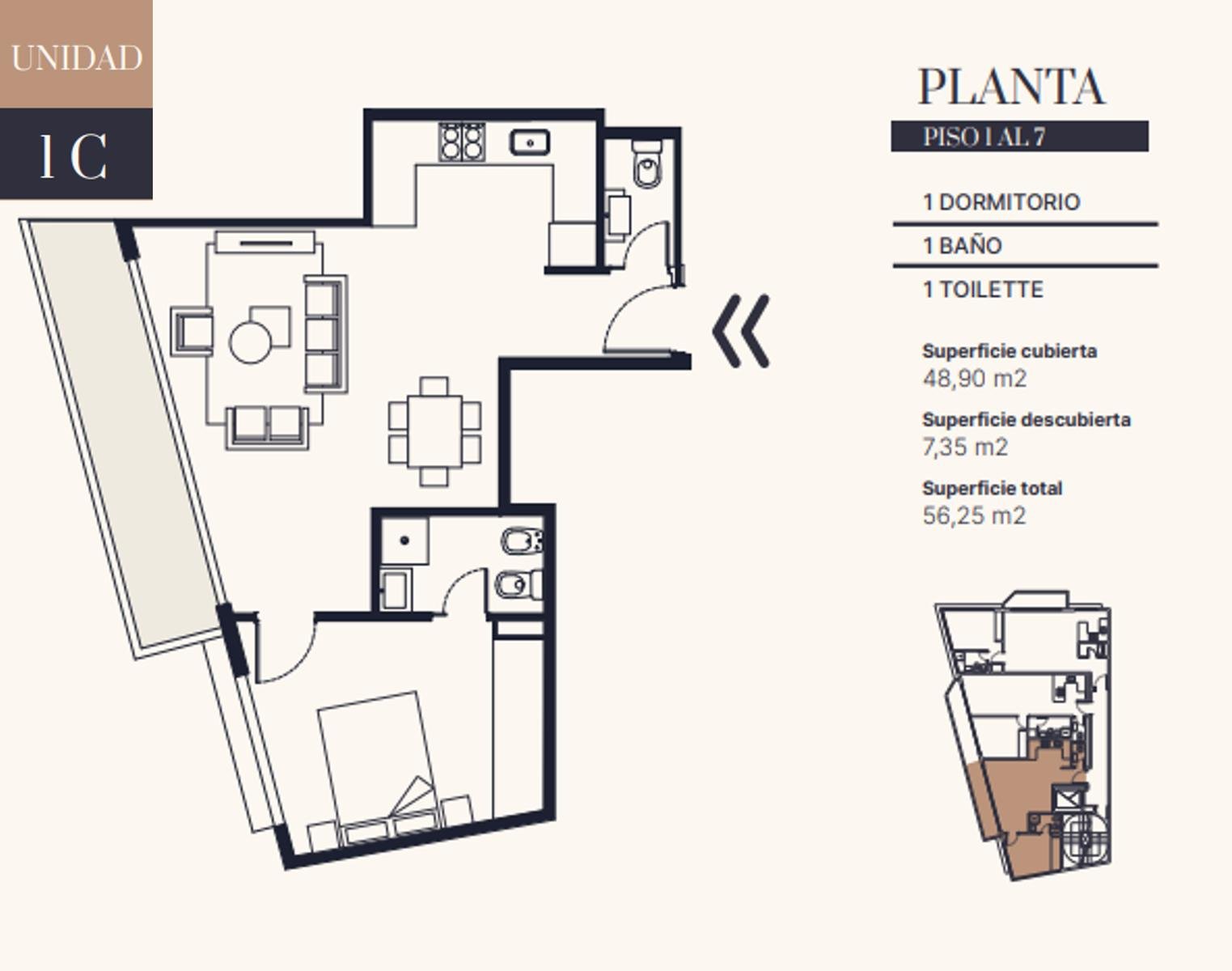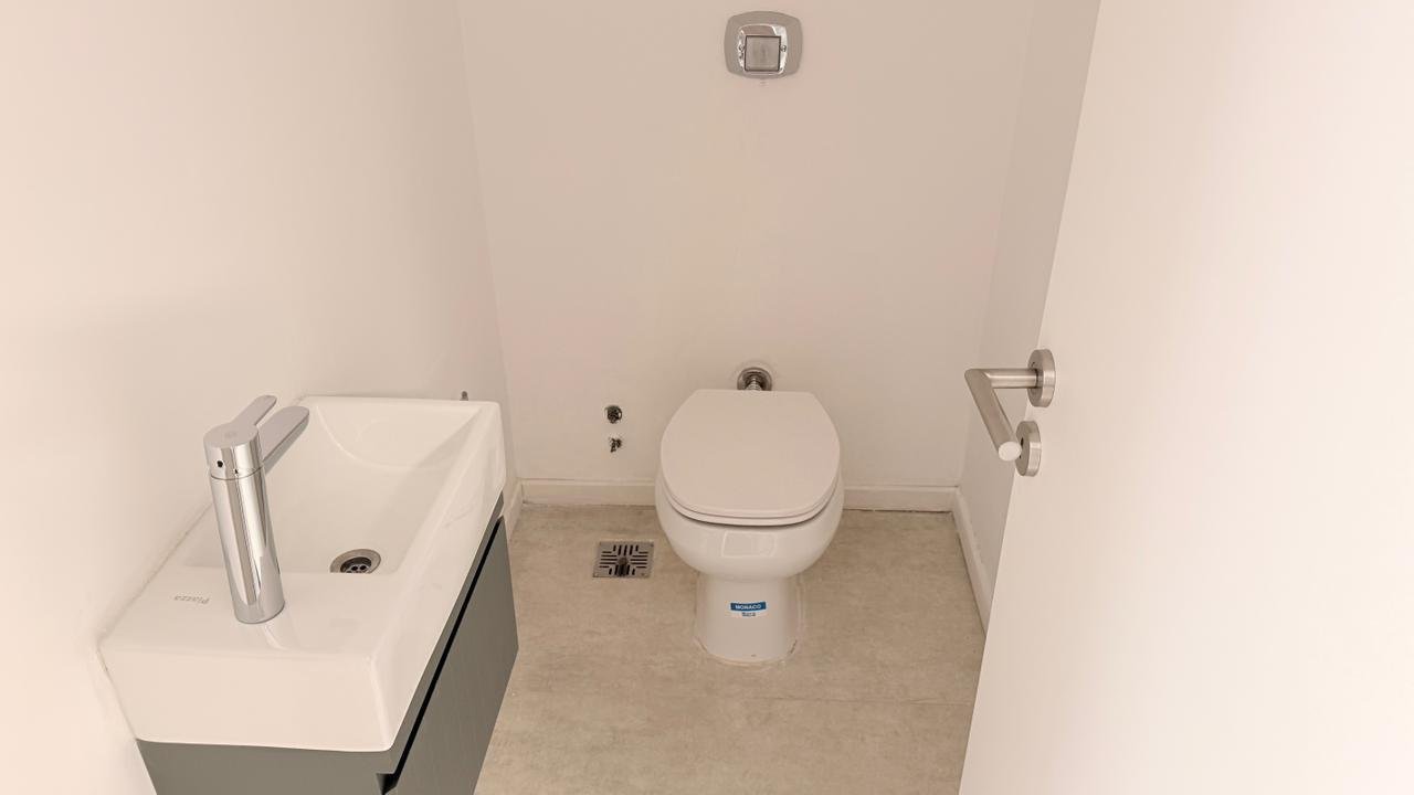 DISTRIBUCIÓNLiving comedor con salida a balcón corrido al frenteCocina integrada con anafe eléctrico y mesada de granito negroDormitorio con placardBaño completo y toilette de recepciónSuperficie total: 59,30 m² (cubierta 52,54 m² + descubierta 6,75 m²)Disposición: frenteOrientación: noroesteAntigüedad: a estrenarEstado: excelenteExpensas: consultar