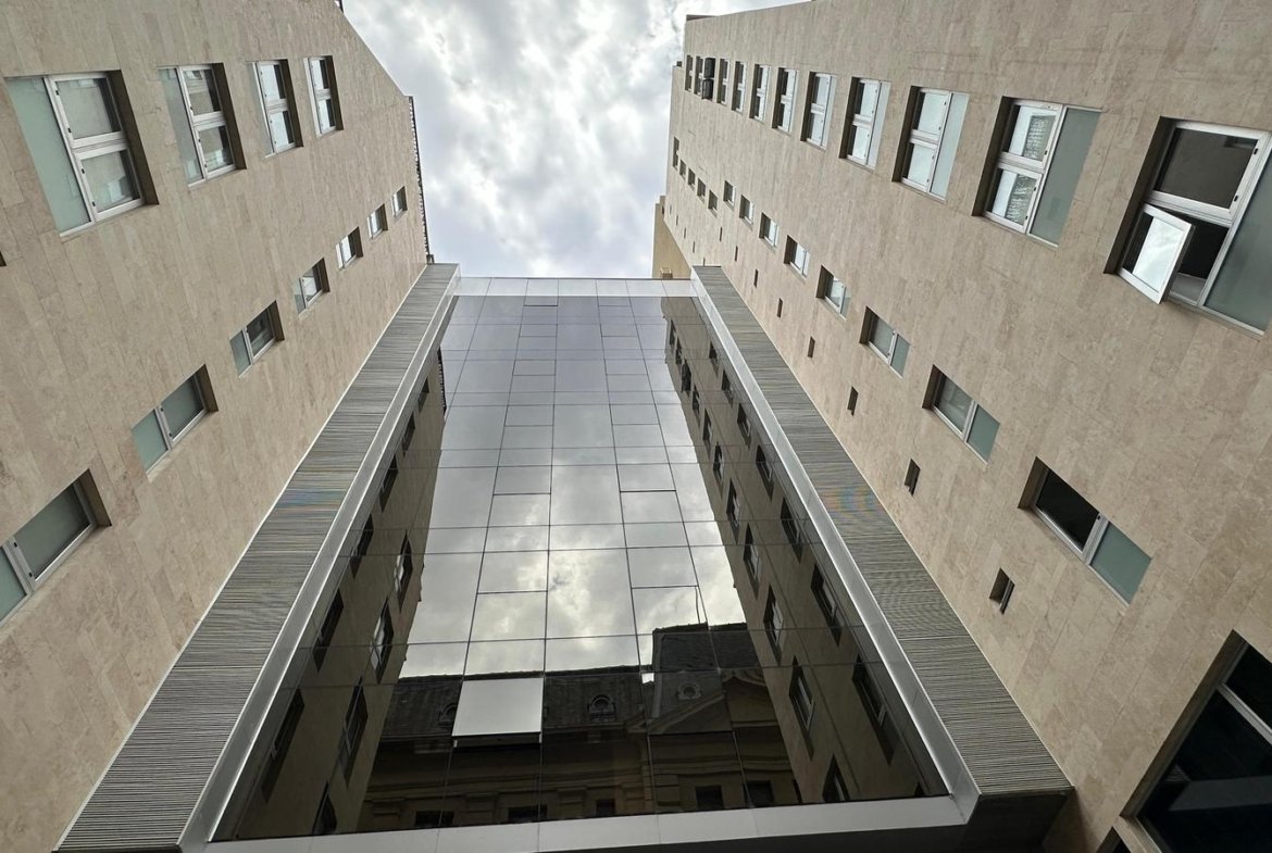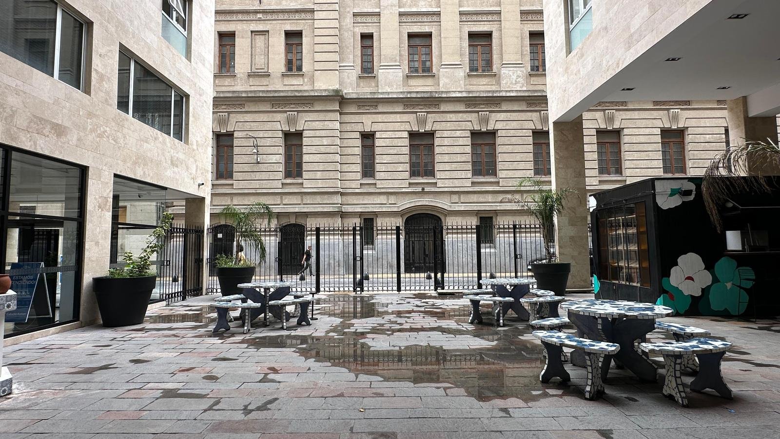 El edificio tiene un diseño acorde con el entorno, siguiendo las líneas constructivas de los edificios vecinos de manera armoniosa, destacando su gran espacio común en la planta baja, contará con local gastronómico, un museo de sitio con la cisterna histórica, y el resto del complejo con cocheras, oficinas y viviendas con todos los servicios.