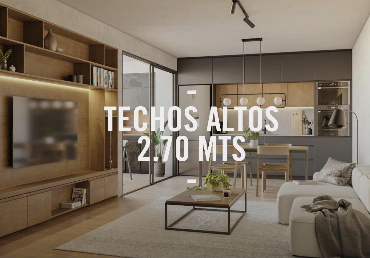 Edificio moderno con construcción de categoría en detalle: techos altos, carpintería de aluminio negro, preinstalación de aires acondicionados, pisos de porcelanatos, Cocina equipada con horno y anafe eléctrico, espacios para lavarropas o lavavajillas