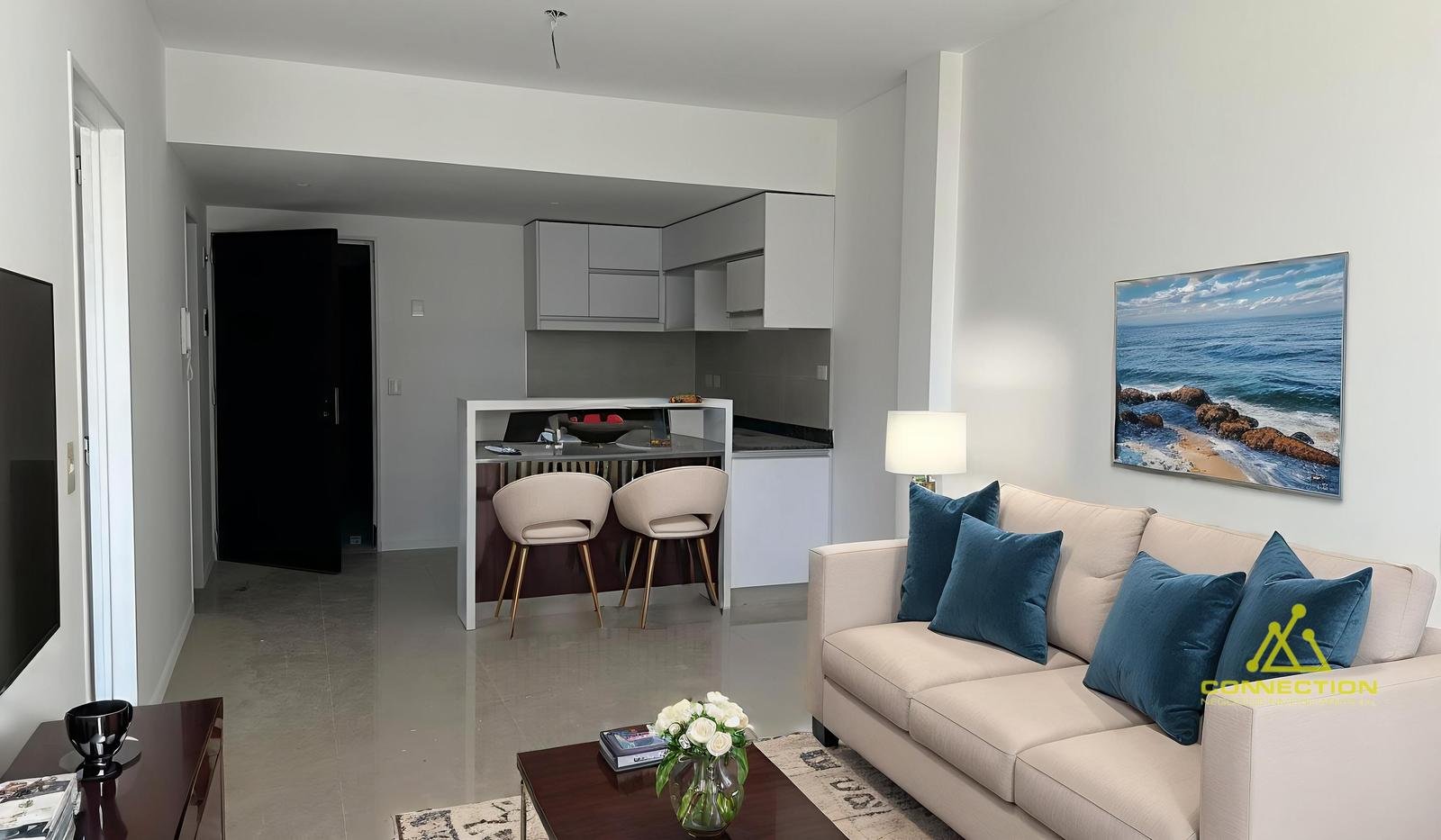 DISTRIBUCIÓNLiving comedor con salida a balcón al frenteCocina integrada equipada con horno y anafe eléctricosToilette de recepciónDormitorio con placardBaño completo con revestimientos de porcelanatoSuperficie total: 47,34 m² (cubierta 39,2 m² + semicubierta 8,14 m²)Disposición: frenteOrientación: esteAntigüedad: a estrenarEstado: excelenteExpensas: $110.000 aprox