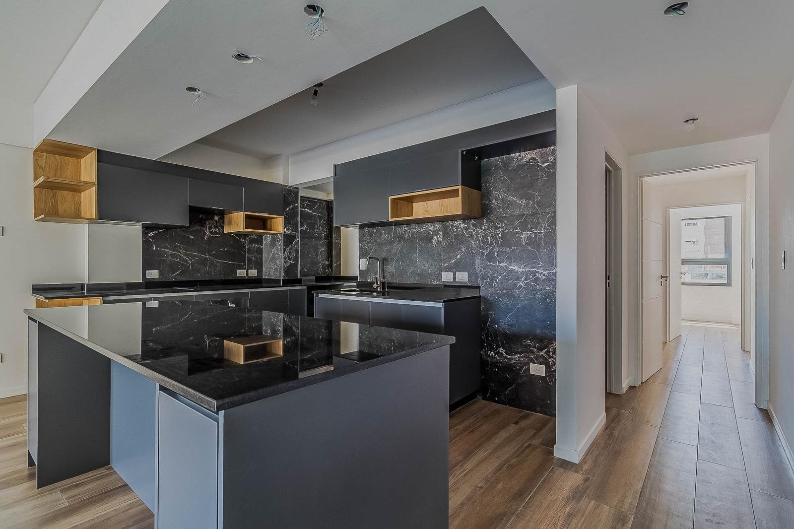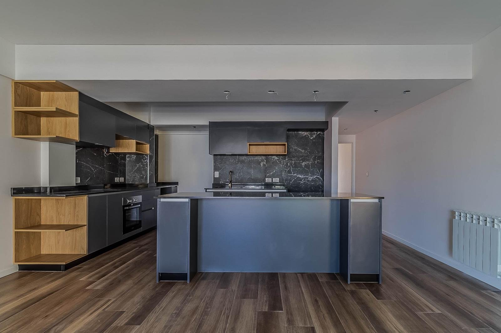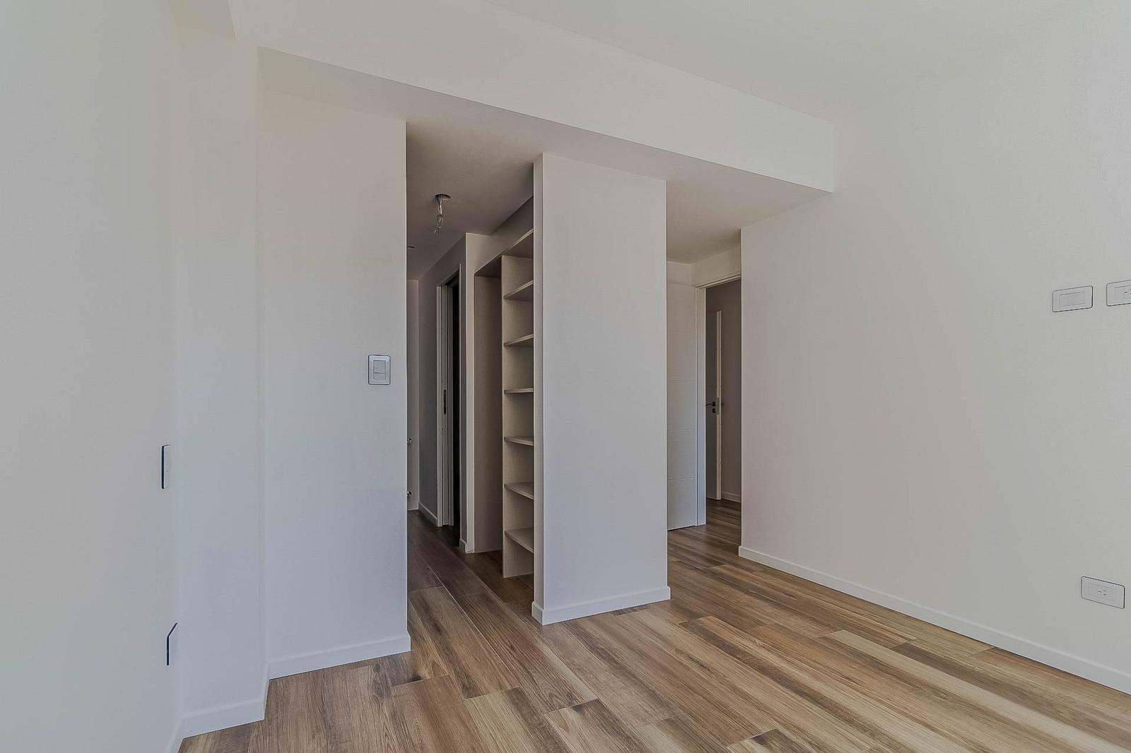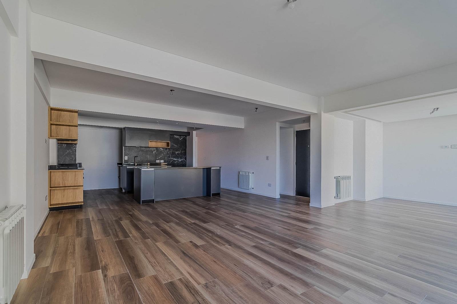 DISTRIBUCIÓNSemipiso al frente con excelente luminosidad y orientación oeste.Amplio living comedor apaisado con salida al balcón.Cocina integrada con muebles completos, barra desayunadora y comedor diario.Dormitorio principal en suite con vestidor y baño completo.Dos dormitorios con frente e interiores de placard.Baño completo y toilette de recepción.Lavadero independiente.Pisos de porcelanato símil madera.