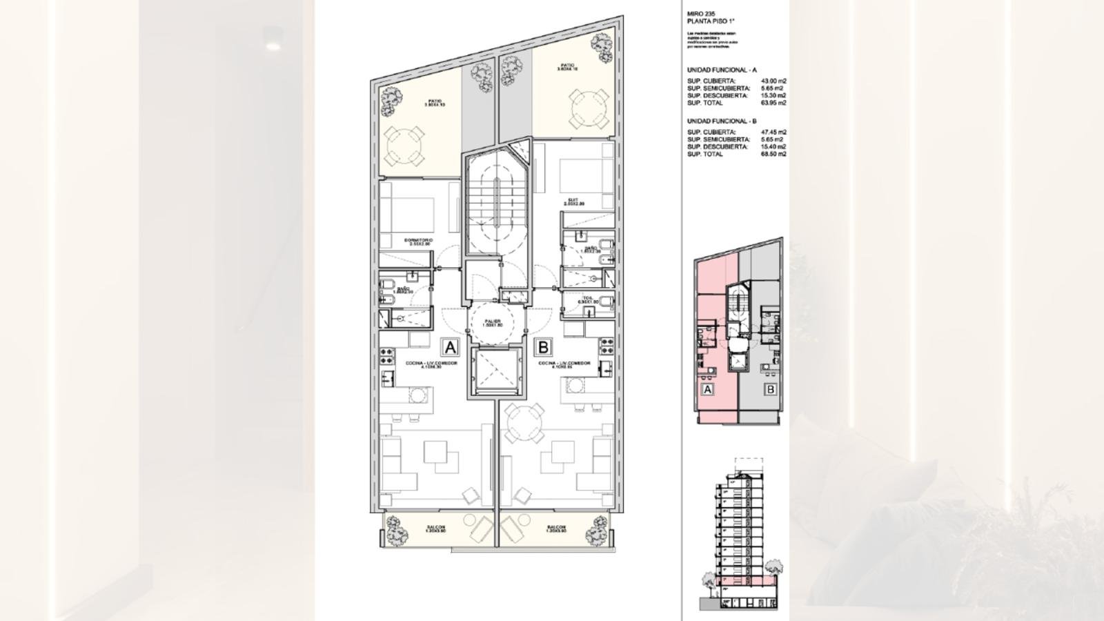El edificio cuenta con un hall de entrada moderno y detalles de diseño que realzan la experiencia de vivir en un entorno único.Ubicación privilegiada en Miro 235,Caballito, a pasos de avenidas principales, comercios y transportes.Un proyecto ideal tanto para vivir como para invertir. Pensado para brindar amplitud, luminosidad natural garantizado por la mañana y confort