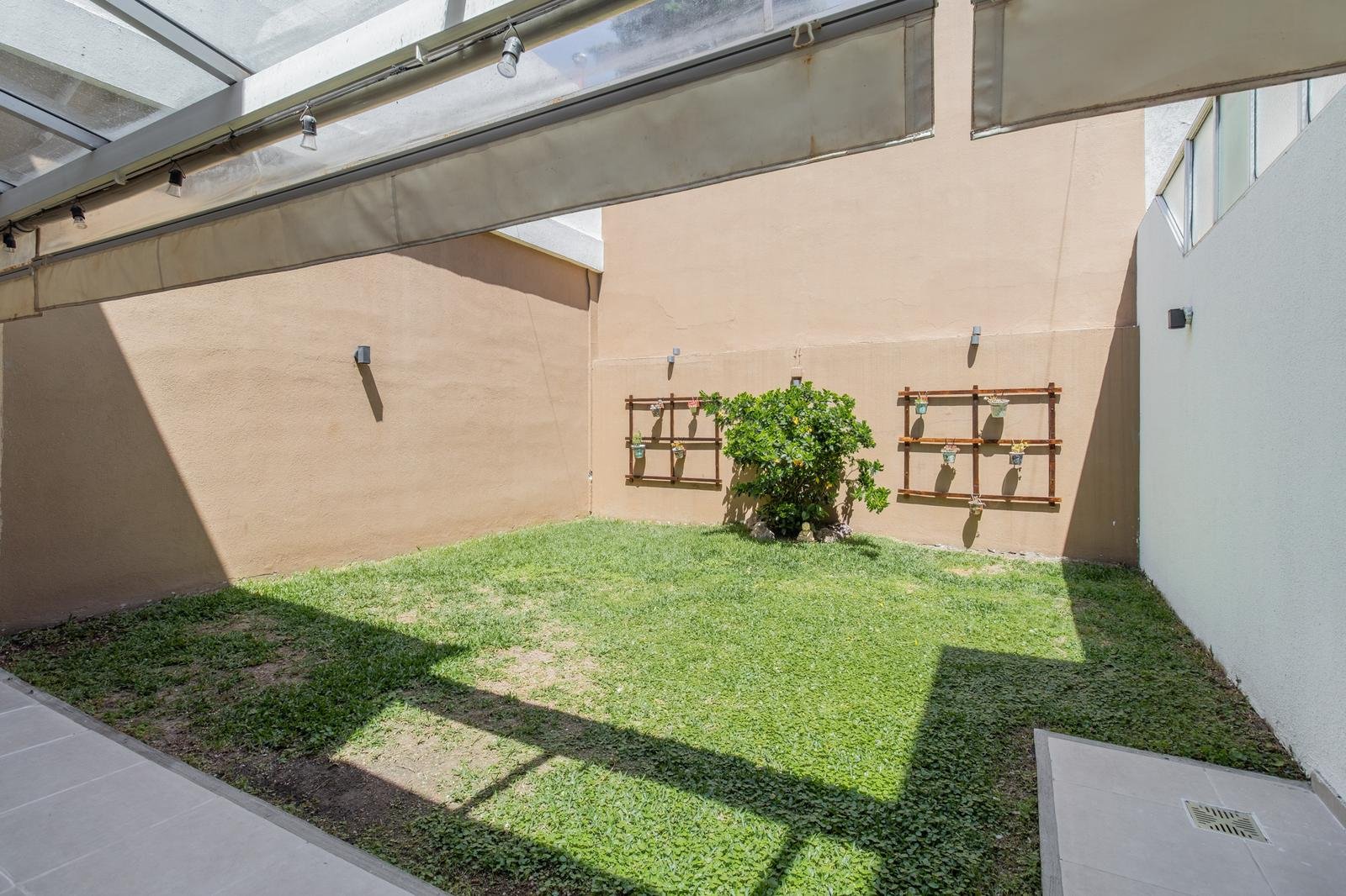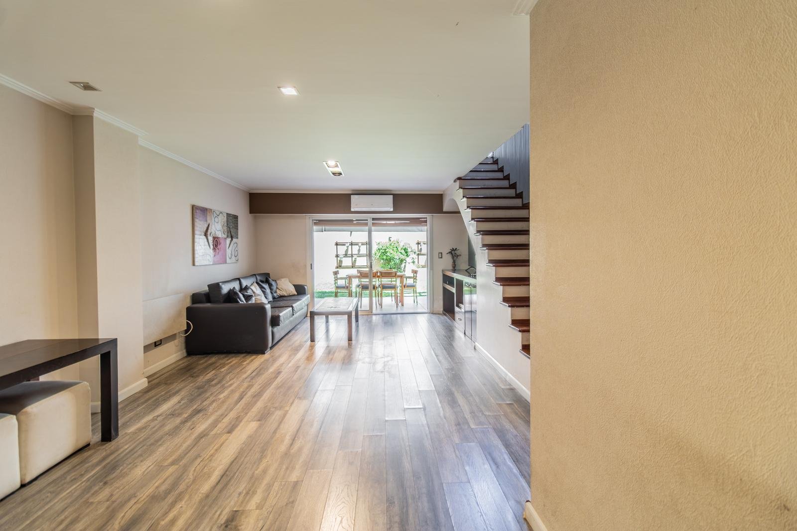 Living comedor: amplio, luminoso, piso de parquet, salida al jardín.Cocina comedor diario: muebles bajo y alto mesada, horno y anafe, lavavajillas, ventilación natural.Dormitorio principal: en suite, con vestidor, orientación Este.Dormitorio 2: con placard empotrado, vista al frente, piso de madera.Dormitorio 3: funcional como escritorio o cuarto de servicio.Baños: 2 completos + toilette.Jardín: 50 m², con parrilla y sector de solárium.Cochera: 2 cubiertas, portón automático.Superficie cubierta: 162,60 m².Superficie total: 213 m².