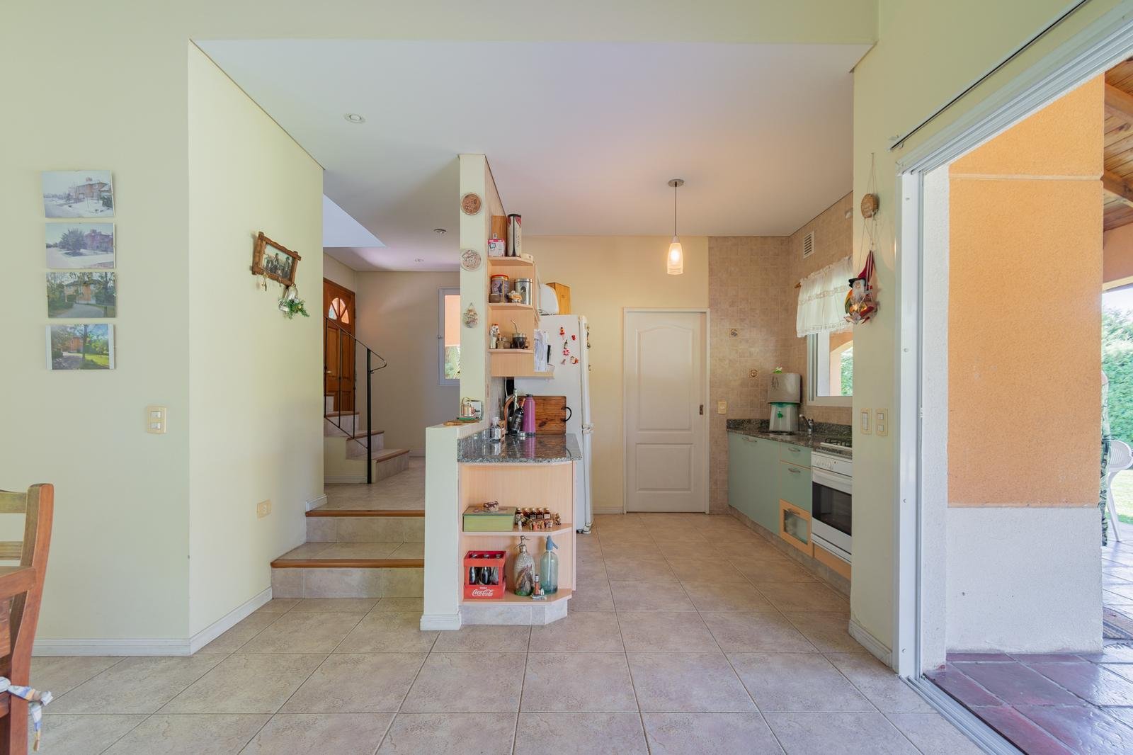 • Recibidor con acceso directo a living y cocina.• Living comedor amplio y muy luminoso, con ventanales al parque.• Hogar a leña en el estar.• Cocina independiente con doble mesada, excelente ventilación y vista al jardín.• Lavadero separado, con salida directa al exterior.• Toilette de recepción, ventilación natural y bacha de apoyo.• Cochera semicubierta para dos autos (funciona también como galería).