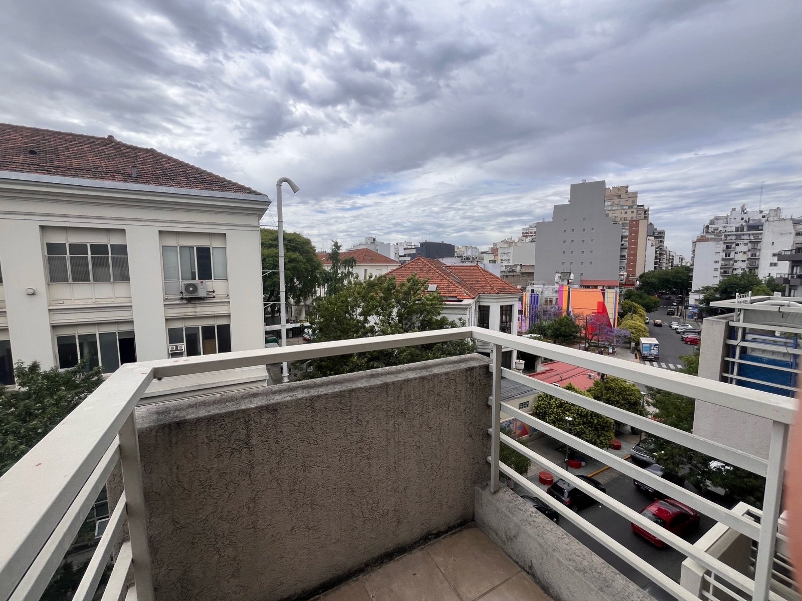 DISTRIBUCIÓN• Unidad al frente en piso alto con excelente luminosidad y orientación oeste.• Ambiente amplio y funcional con salida a balcón corrido de 3 m.• Cocina semi–integrada, equipada con mobiliario completo y mesada de calidad.• Baño completo con revestimiento cerámico.• Pisos cerámicos en toda la unidad.• Excelente estado general.• 40 m² totales (37 m² cubiertos + 3 m² semicubiertos)