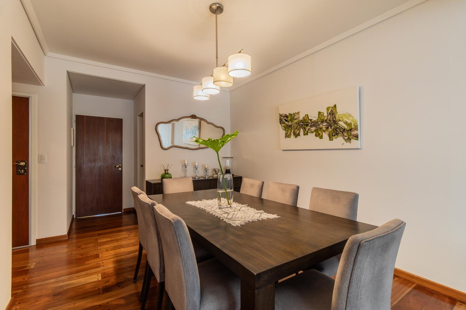 Piso – Palier privado – Orientación norte – Ambientes amplios y luminosos – Calefacción por losa radiante – Caldera individual – Placares empotrados – Puerta blindada – Seguridad digital – Persianas – Estilo moderno – Excelente estado general – Apto mascotas – Ubicación tranquila.