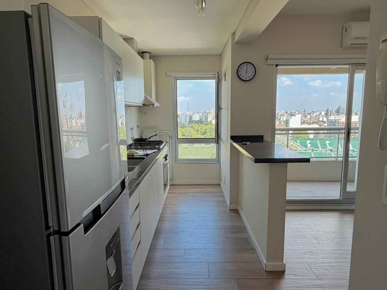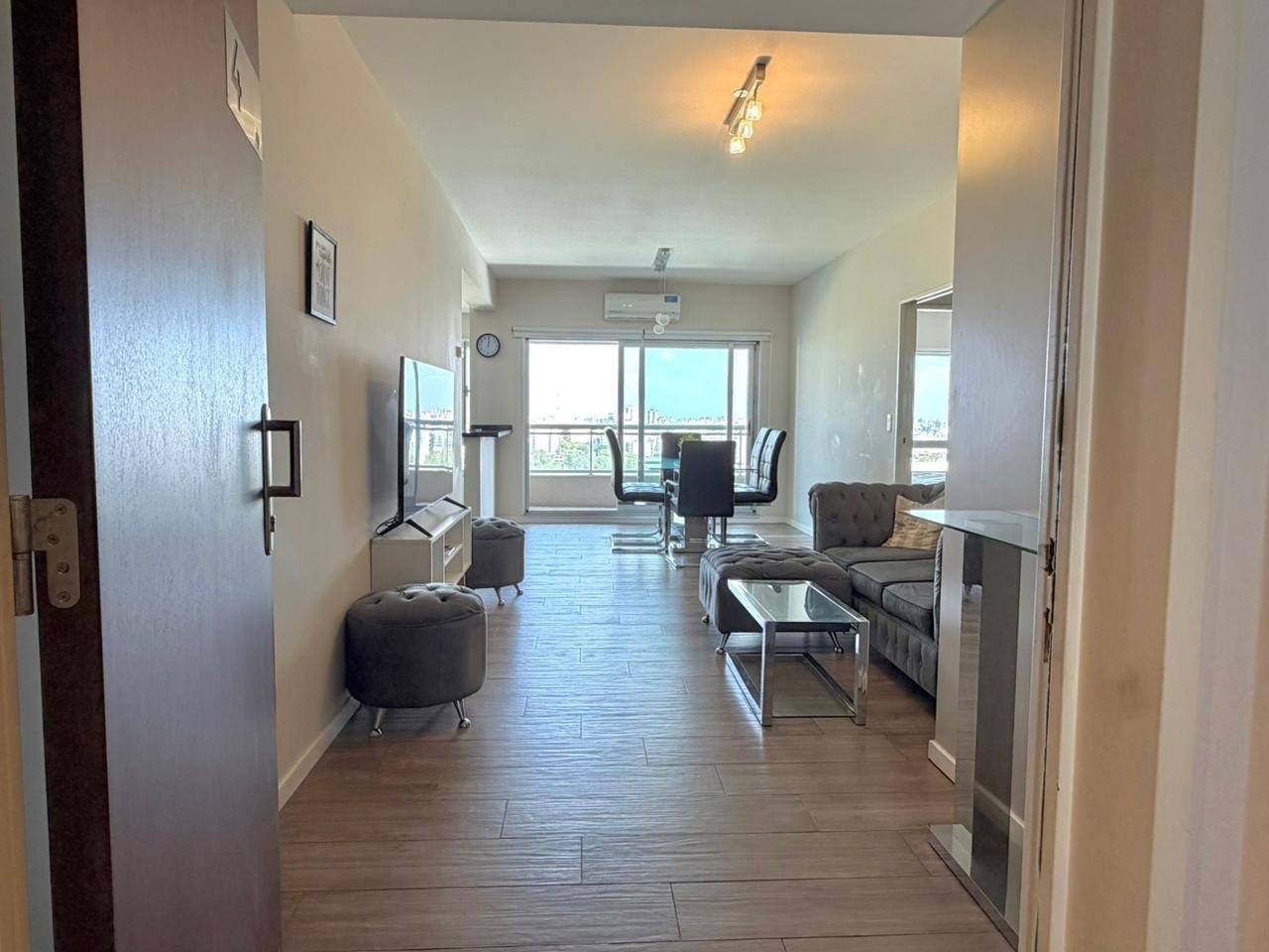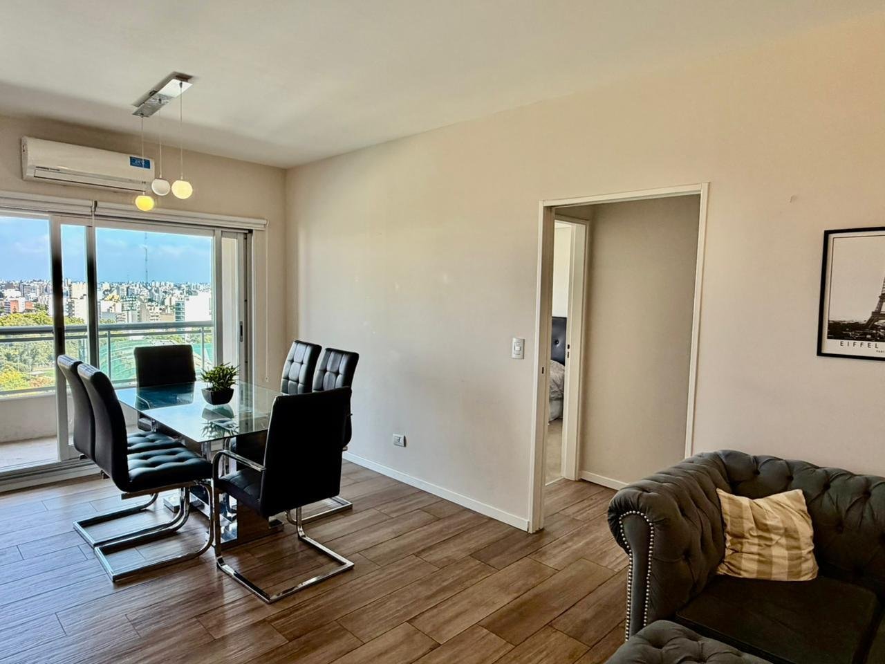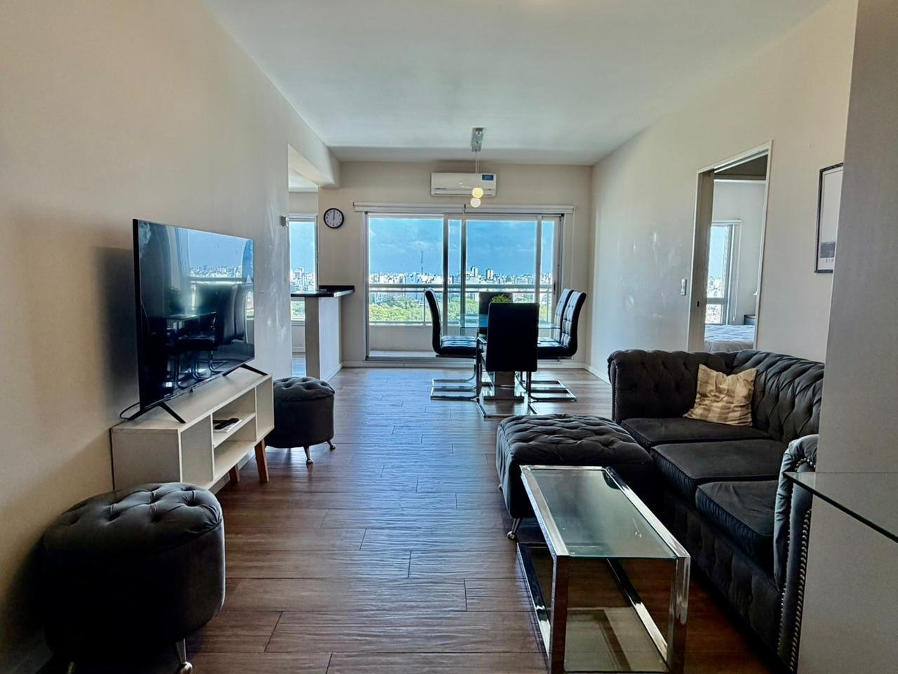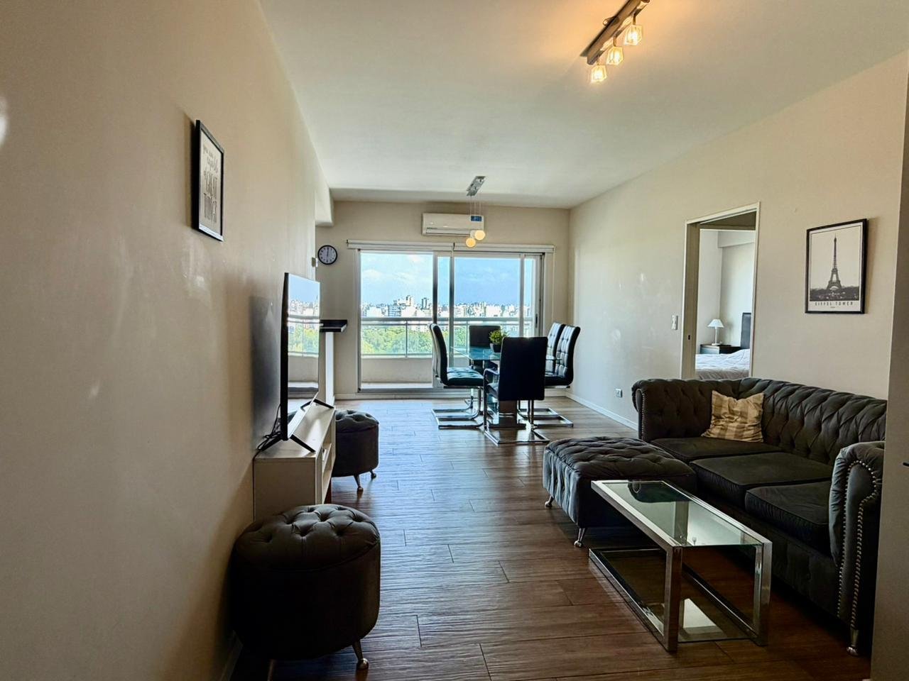 Unidad de 2 ambientes amoblado en piso alto con balcón y vista panorámica