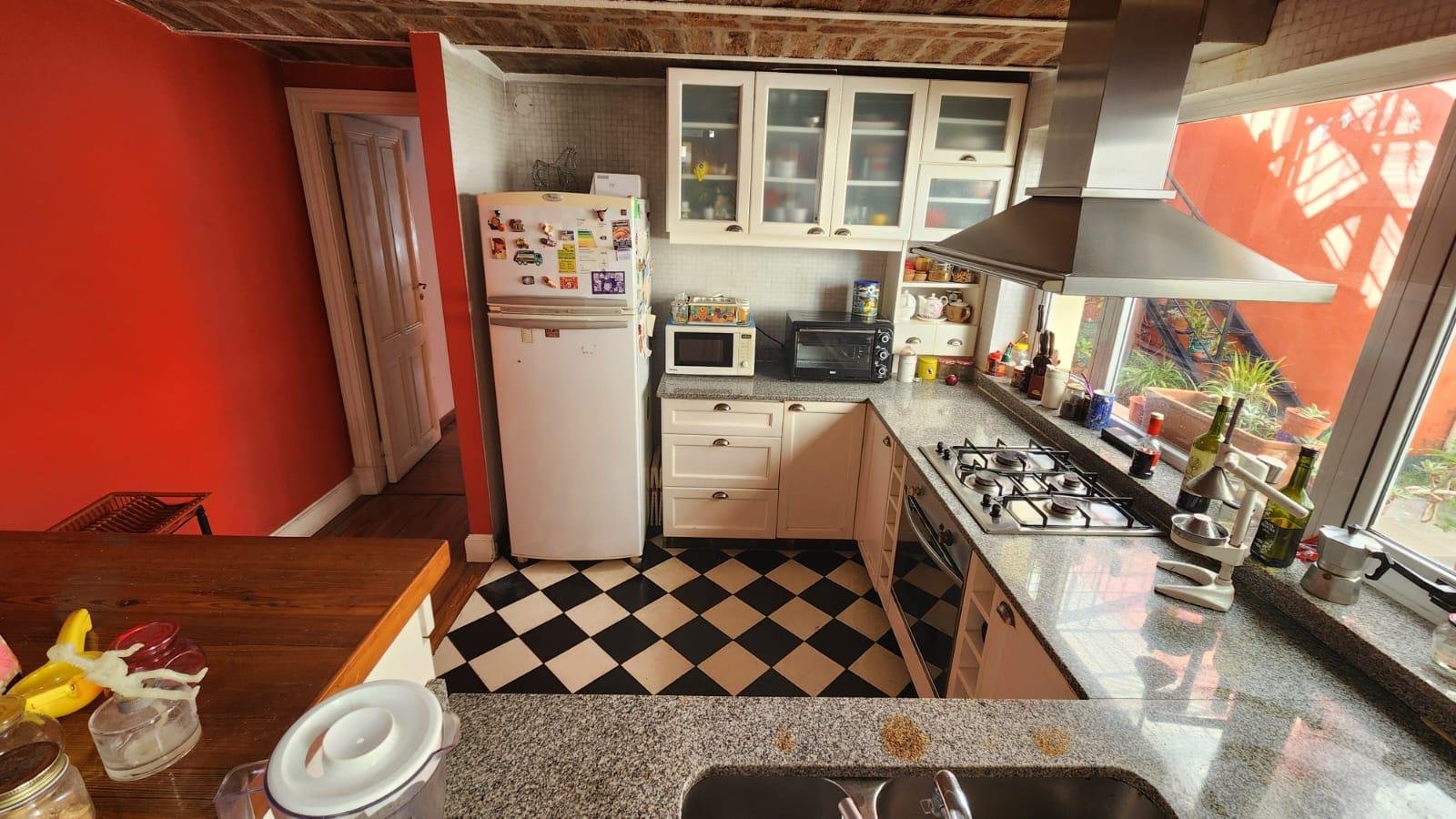 • Dormitorio 1 principal. 3,34 x 3,94 m, con escritorio de 1,99 x 1,55 mts. Placard empotrado, pisos de pinotea, ventanas con hermosa vista al jardín• Comedor con vista al jardín e integrado con la cocina• Cocina Integrada, con barra desayunadora, ventilación natural, anafe y horno con campana, piso endamado, ladrillo visto.• Baño completo. Con ventilación natural.• Toilette.• Techos bovedilla de ladrillo en living, comedor y cocina